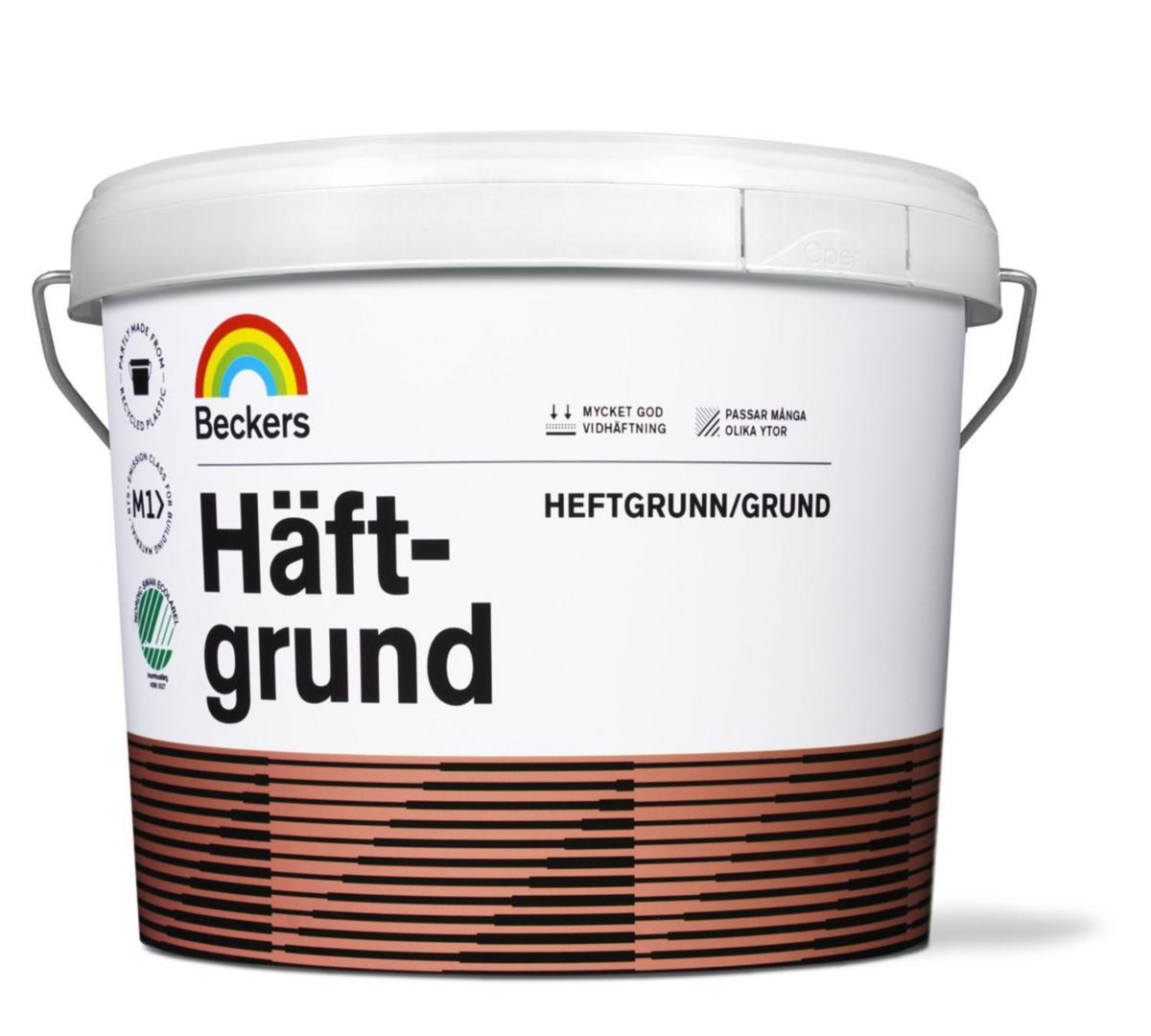 Beckers Häftgrund är en akrylatgrundfärg med extra bra vidhäftningsförmåga till hårda ickesugande underlag. Den används i första hand inomhus på industrilackerade-, förzinkade/galvade-, aluminium-, koppar- och hårda PVC-ytor. Häftgrund kan också användas som grundfärg på detaljer utomhus som inte kräver någon rostskyddsmålning. Färgen torkar snabbt och kan övermålas med Beckers vattenburna täckfärger.