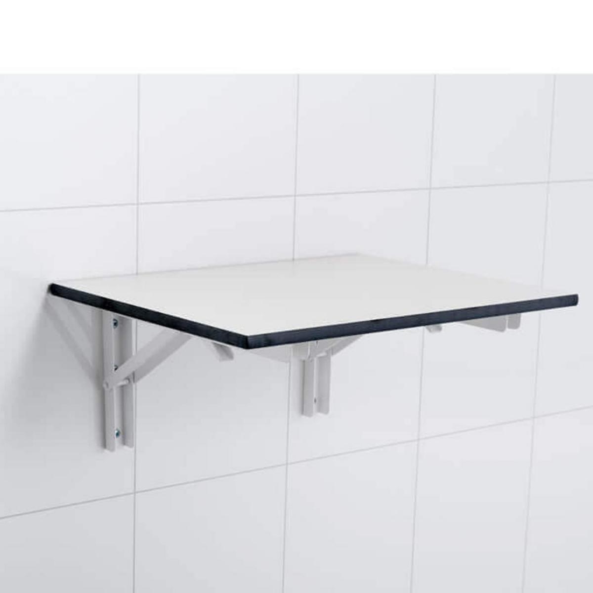 Fällbar hylla i 12mm kompaktlaminat med svarta kanter. Inklusive fällbara konsoler