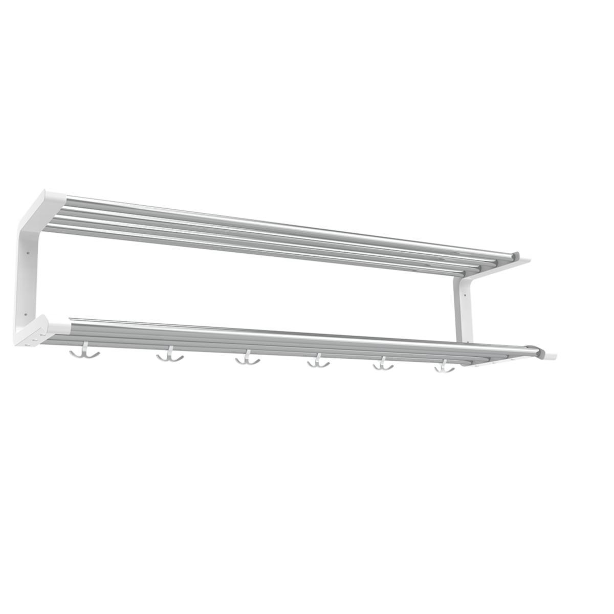 EX123 tillverkas i längderna 0,4, 0,6, 0,8, 1,0 samt 1,2m. 5 st ankarkrok/m. 19mm förkromade stålrör. 40mm breda konsoler av formpressad björk alt. vit eller svartlackade.