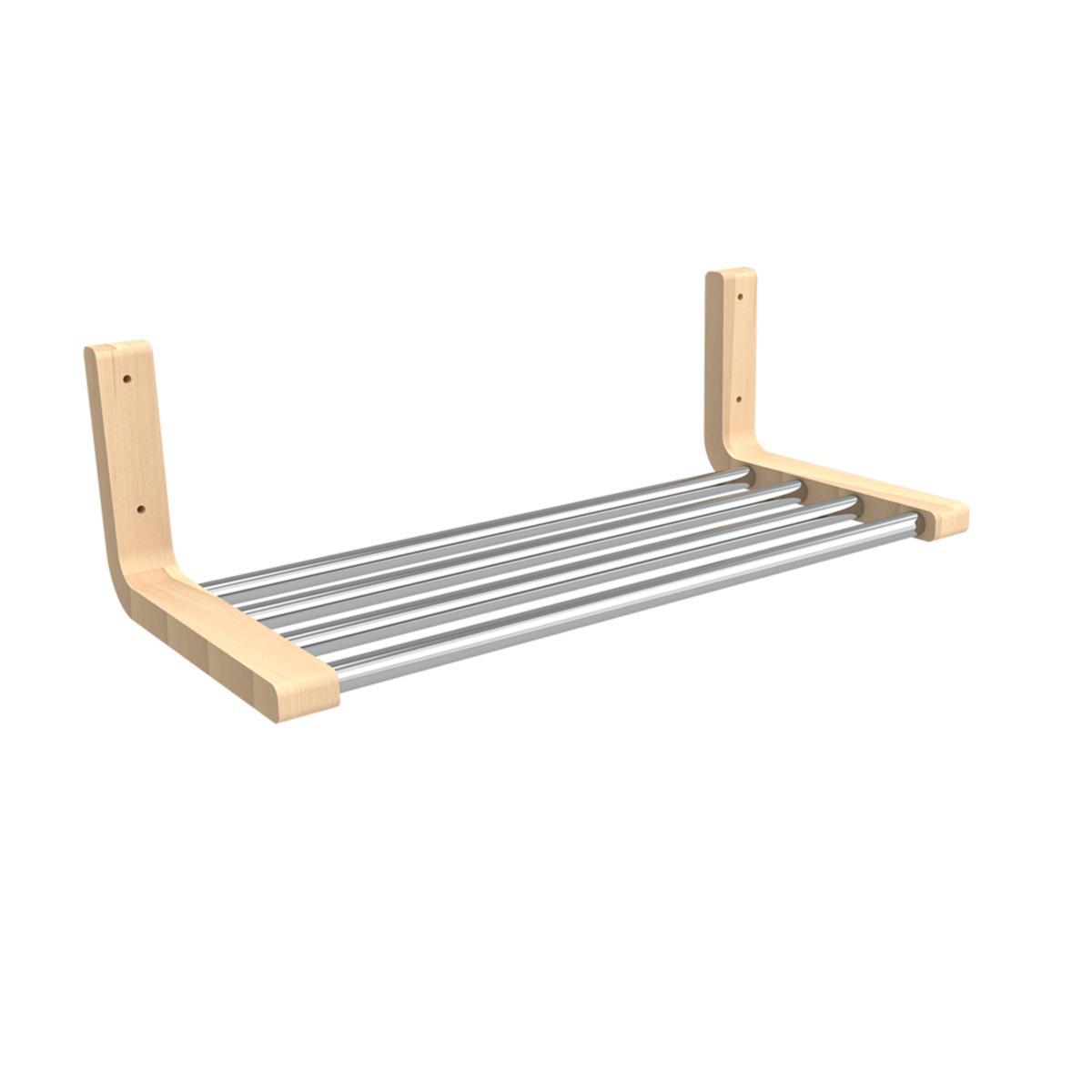 EX126 tillverkas i längderna 0,4, 0,6, 0,8, 1,0 samt 1,2m. 19mm förkromade stålrör. 40mm breda konsoler av formpressad björk alt. vit eller svartlackade.