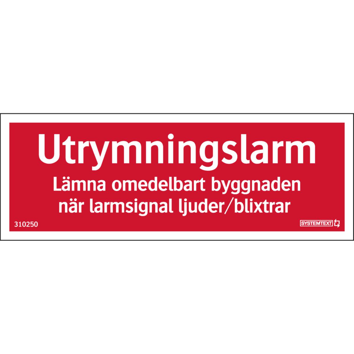 SKYLT "UTRYMNINGSLARM" 150X54 MM HÅRDPLAST