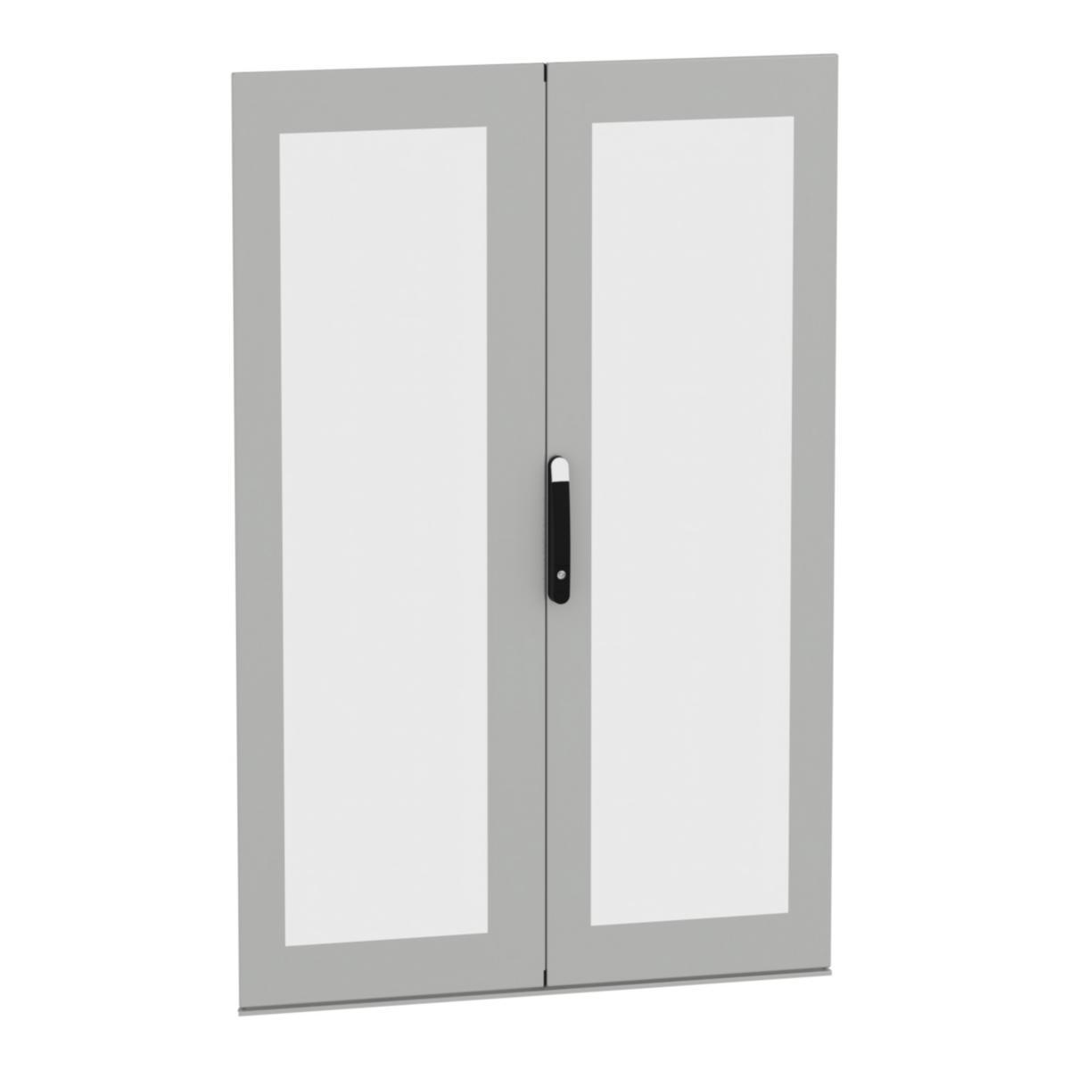 Dessa glasdörrar är används till PanelSeT SFN golvskåp. Den har en nominell höjd och bredd på 1800 mm respektive 800 mm. Dörrarna är gjorda av stålplåt och Securit glas. , medan handtaget är tillverkat av polyamid 6 med 30 % glasfiber. En epoxi-polyesterpulverfinish ger ett jämnt utseende. Den har en grå (RAL 7035) färg med ett svart (RAL 9005) handtag. De har en öppning upp till 120 grader. Huvuddörren har ett fyrpunktslås med handtag som har en 5 mm DB låsinsats, medan sekundärdörren har ett låsstångssystem med handtag. Detta produkten är kvalificerad som en grön premie, med minimal användning av farliga ämnen. Denna produkt är kvalificerad som en grön premie, med minimal användning av farliga ämnen