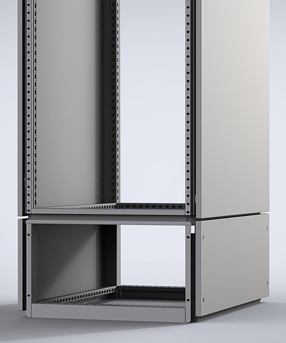 Ramen skapar extra utrymme längst ner och kan avskärmas från skåpet. Den har ett universellt hålmönster för smidig montering av tillbehör.