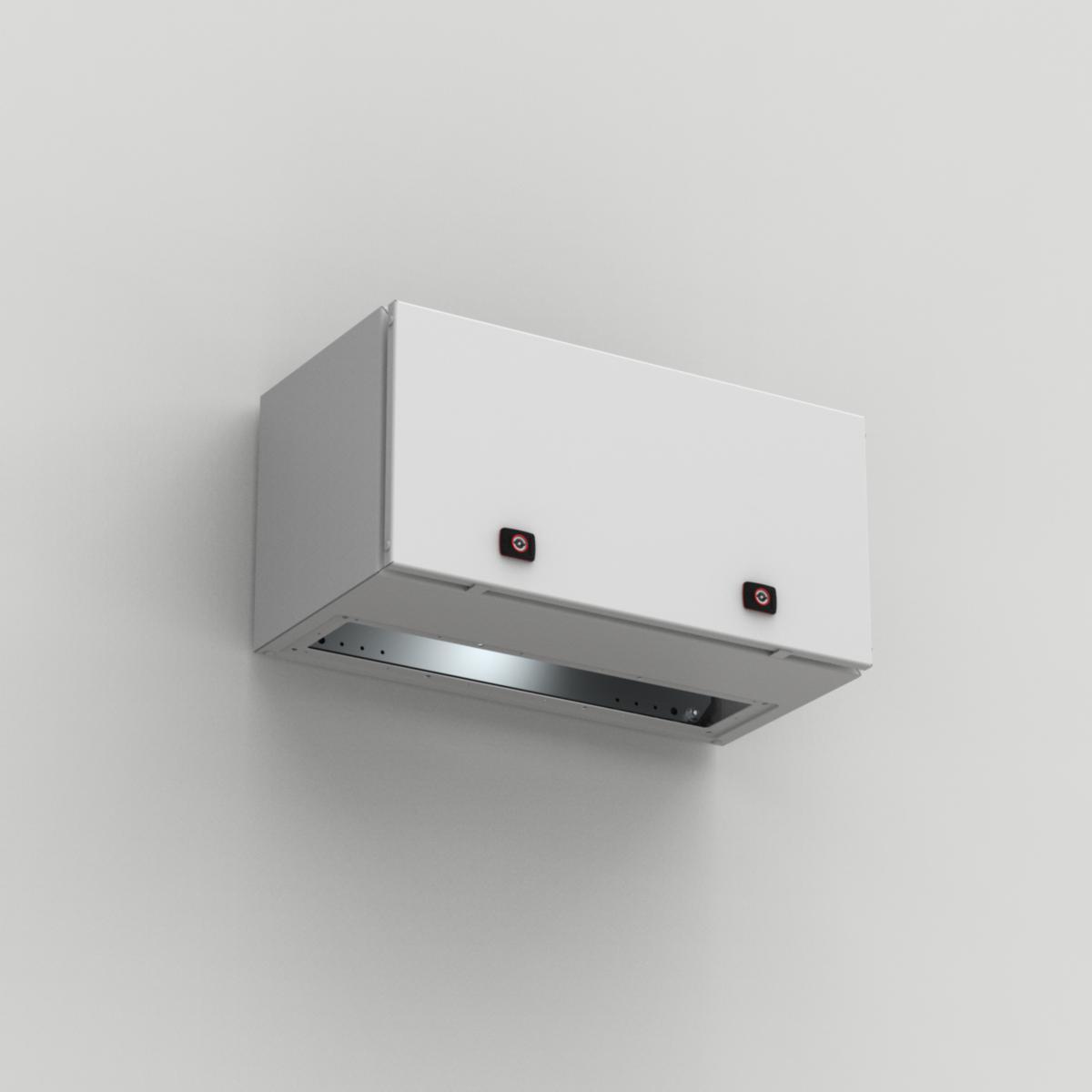 Skåpen i väggskåpssortimentet MAP i stålplåt med enkeldörr har skyddsgraden IP 66, horisontella gångjärnsförsedda dörrar med flänsöppningar upptill och nedtill. Var och en av skåpen kan enkelt kombineras med ett annat väggmonterat skåp, vilket gör att du kan skapa konfigurationer med två fack med individuell åtkomst. Vatten och damm hindras från att tränga in i skåpet, vilket eliminerar risken för komponentfel och onödiga driftstopp.