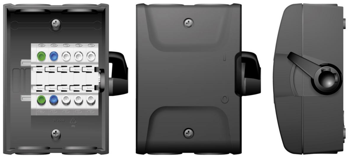 Plastkapslad lastbrytare/frånskiljare IP65. Försedda med sidomonterat låsbart vred samt lägesindikering. Tillverkad i polykarbonat med knockout för 4 x kabelgenomföring gänga M25, ingång via bakstycke i mjuk TPE underlättar tät ledningsgenomgång. Då även monteringshålen och packningen är i TPE uppnår kapslingen IP65.