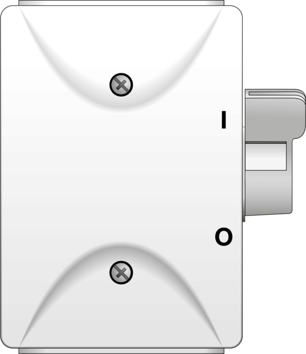Kapslingsfärg: Vit = DV, Grå = DG, Svart = DS, Dusty Grey = DDG eller Faluröd = DR, H=Hjälpkontakt, Sidomanövrerat låsbart vred.
