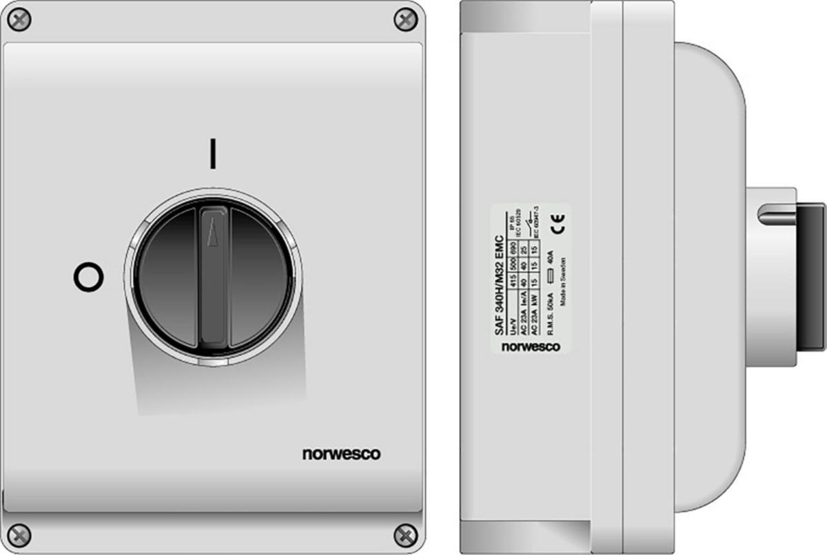 Försedda med frontmonterad låsbart vred samt lägesindikering 0 och 1 på locket av brytaren.