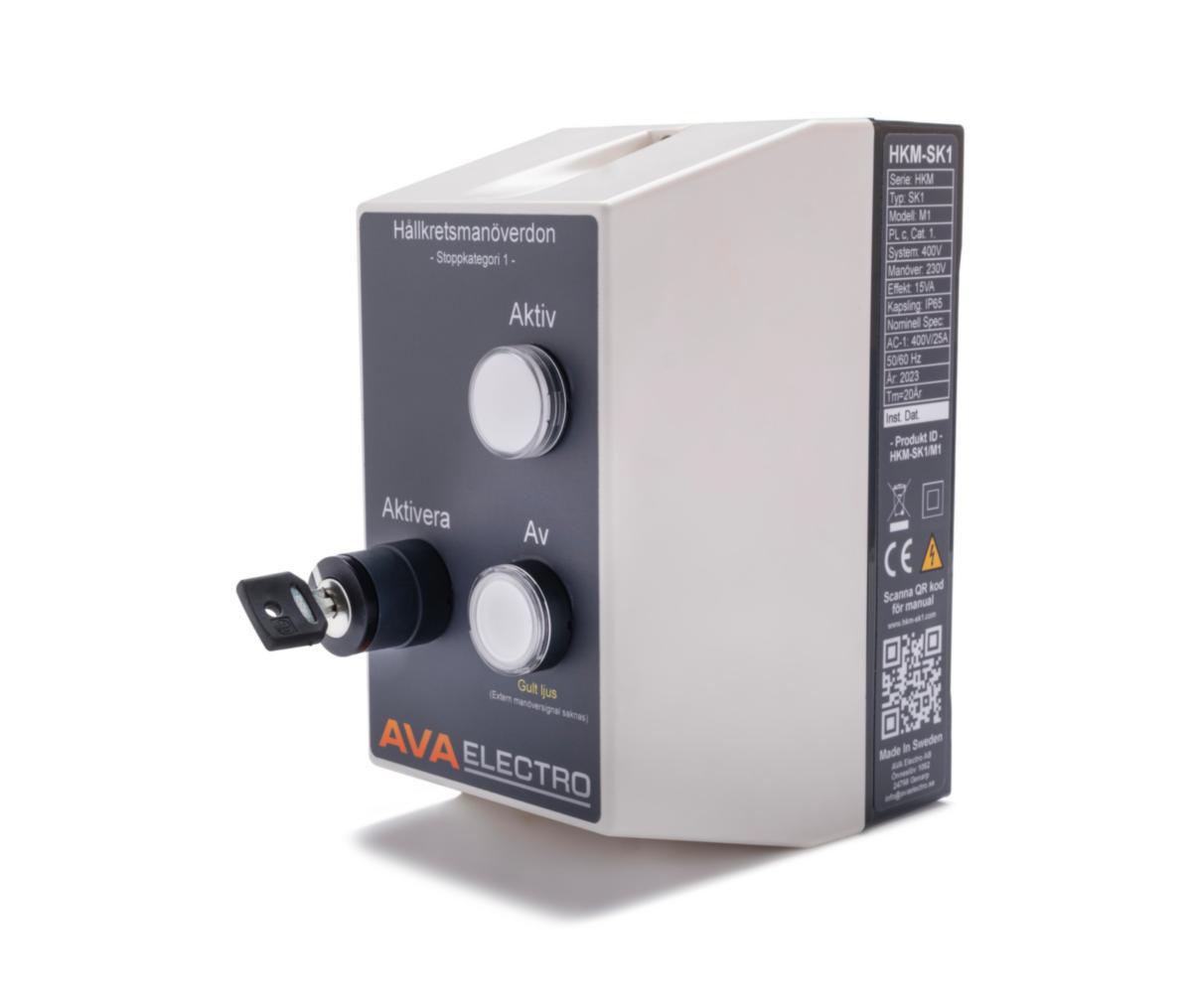 HKM-SK1 är ett nyckelmanövrerat hållkretsmanöverdon som är ämnat som interface mellan maskiner i stoppkategori 1 och externa nödstoppssystem konstruerade enligt stoppkategori 0-principer.
