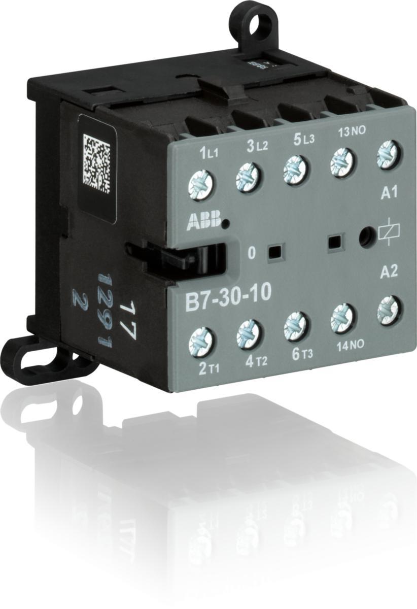 Minikontaktorer är en kompakt 3 polig kontaktor med 1 hjälpkontakt,, för applikationer där till förlitlighet är ett måste och utrymmet är begränsat. Minikontaktorer används i bostäder, kommersiella byggnader och industriella tillämpningar för kontroll av 1- eller 3-fas laster upp till 4-5,5 kW (AC-3) och 20 A / 690 V (AC-1) eller omkoppling av styrsignaler. Ytterligare funktioner är den brumfria spolen.