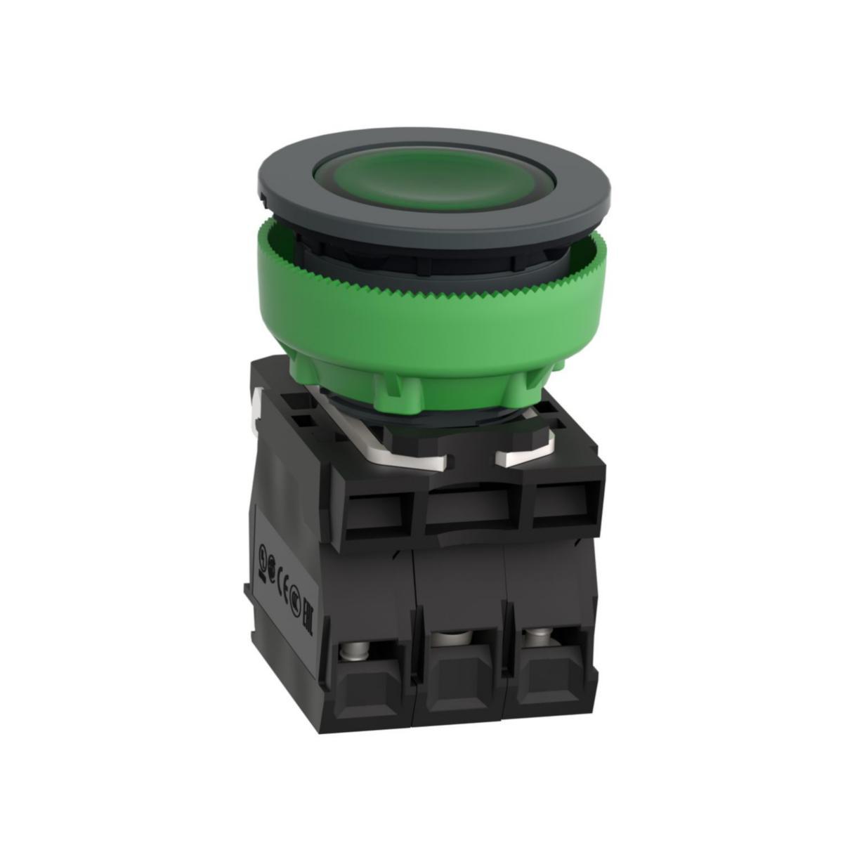 Lamptryckknapp Harmony XB5 komplett i plast för infällt montage med LED plant trycke återfjädrande grön 24 V AC/DC 1xNO+1xNC