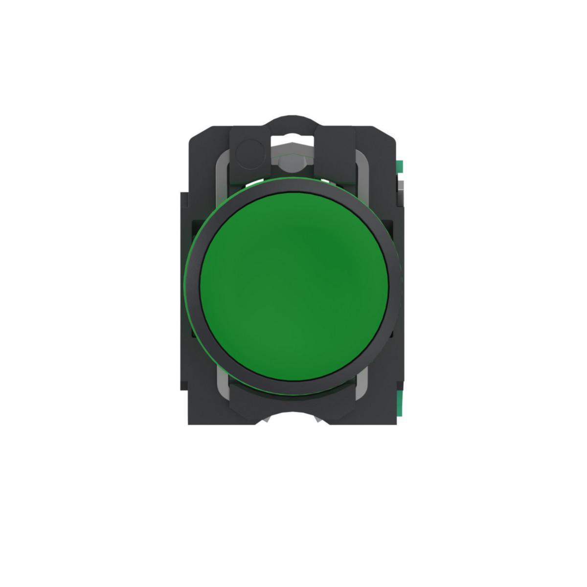 XB5AA315 är en komplett tryckknapp i plast med återfjädrande och plant trycke i grön färg. Det medföljer en montagesockel monterad med ett NO kontaktblock med push-in fjäderklämmor. Push-in fjäderklämmorna ger enkel och snabb montering utan verktyg och optimal skydd mot vibrationer. Modulerna är extra kompakta och har endast ett djup på 34,2 mm på baksidan av huvudet. Harmony XB5/ZB5 tryckknappar är utformade för montering på fronten av en maskin, fronten av en panel eller i en tryckknappslåda. Tryckknapparna monteras enkelt i ett 22 mm hål och de är lätta att montera eftersom trycket inte faller ut när den har satts i hålet. Muttern på baksidan fästs enkelt med monteringsverktyget (ZB5AZ905), varefter hållaren (ZB5AZ009) klickas på trycket. Kontaktblock och eventuellt lampblock monteras på hållaren, och totalt upp till 9 block kan monteras på baksidan av en tryckknapp (beroende på modell). Plastserien är robust och kan användas inom ett brett spektrum av branscher, inklusive livsmedelsindustrin där den är motståndskraftig mot rengöringsmedel. Skyddsklassen är IP66, IP67, IP69 (ISO) och IP69K (DIN), och tryckknapparna kan användas i temperaturområden från -40 till 70 grader Celsius. Det är möjligt att köpa till extra ZBE kontaktelement om ytterligare kontaktfunktioner önskas. För märkning används ZBYxxxx skylthållare med omärkta skylt för individuell märkning. Det er også muligt at påføre opmærkning direkte på fronten af trykknappen med Harmony designværktøjet.