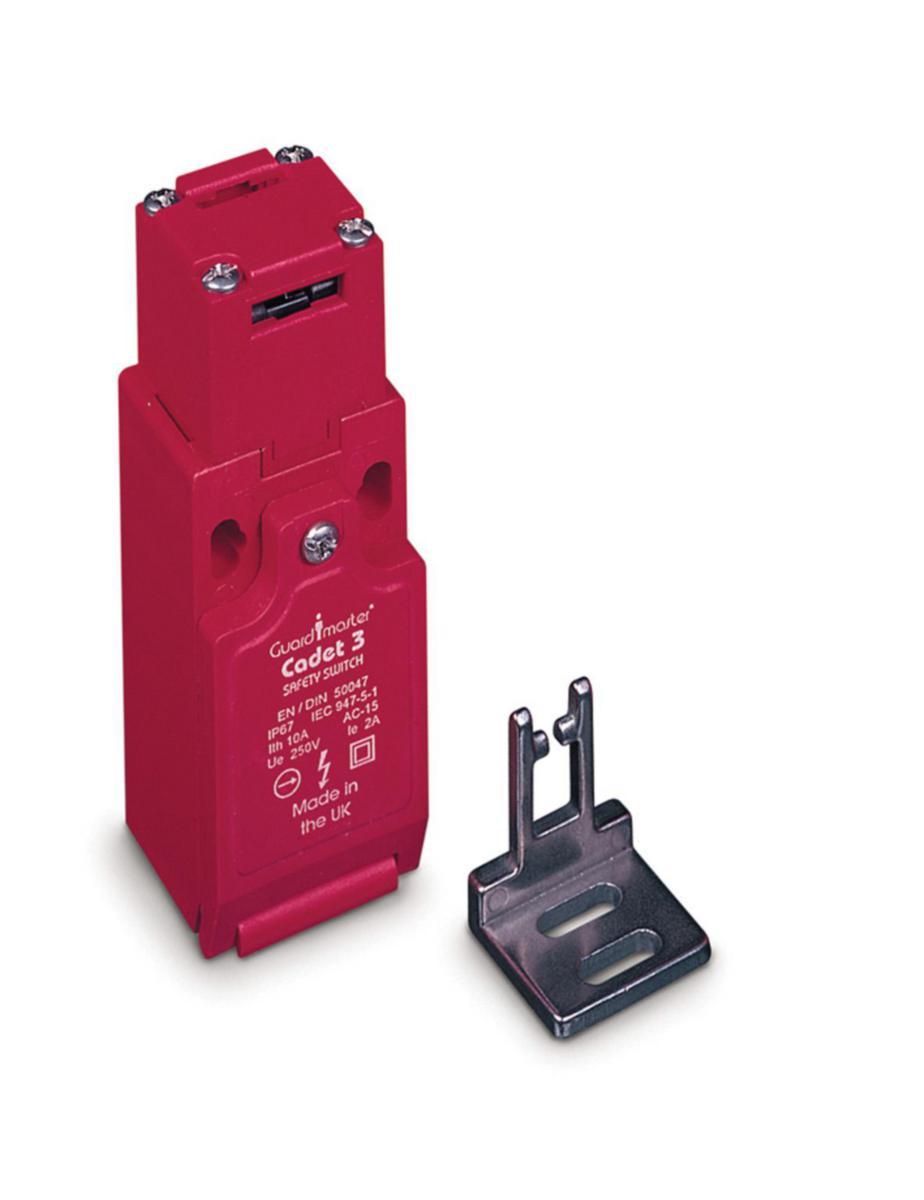 Liten flexibel nyckelbrytare som passar till luckor. Cadet 3 har två säkra kontakter för tvåkanalig inkoppling till ett säkerhetsrelä samt en signalkontakt för indikering. Cadet 3 monteras enligt DIN-standard och har åtta möjliga nyckelingångar för lätt och flexibel montering. Brytaren går att få med platt eller vinklad nyckel. Det finns även en GD2-sats som innehåller en semiflexibel nyckel och en styrenhet i rostfritt stål för mer krävande applikationer.