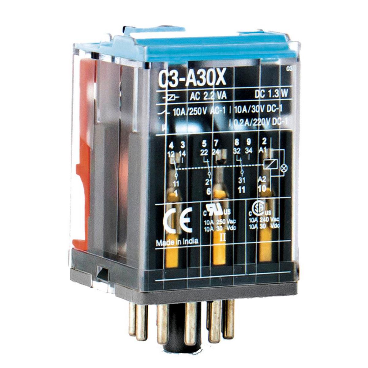 Ny generation C3-A30,11-pins standardrelä med mekanisk och LED-indikering samt testknapp (standardspolvärden). Temperaturområde -20 till +60°C. Tvillingkontakt