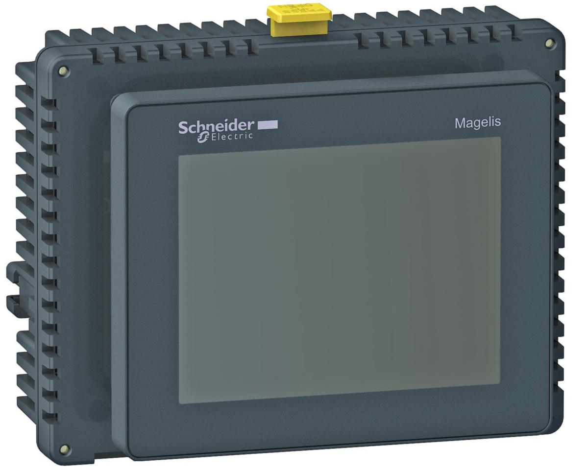 3,5/ 5,7" TFT, pekskärm färg skärm QVGA 65000 färger, 320x240 pixels, kommunikation via RJ45 seriell port RS232/RS485, USB mini-B eller RJ45 Ethernet port, applikationsladdning eller perfiera enheter via USB-A, 24VDC. Montage via enhål 22,5mm.