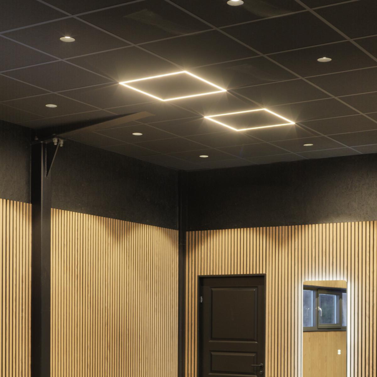 Framy en lysande ljusram 36 watt, (595x595) stomme i svart (RAL9011) utförande som erbjuder behagligt flimmerfritt ljus. Prismatisk yta ger minimal bländning (UGR19). 3600lm. 90°spridningsvinkel.