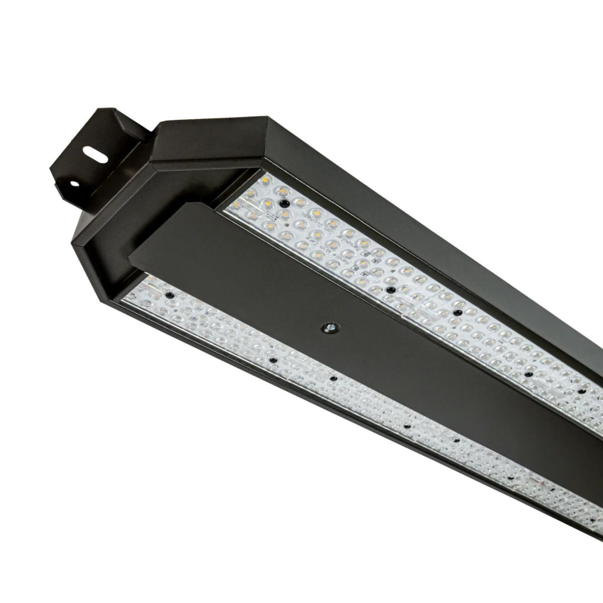 Lager och industriarmatur för höga takhöjder, 101W, 4000K, 17.500lm, L=800mm, smalstrålande optik för lagergångar, L70/B10 100.000 h. Andra effekter, DALI, CLO på förfrågan.