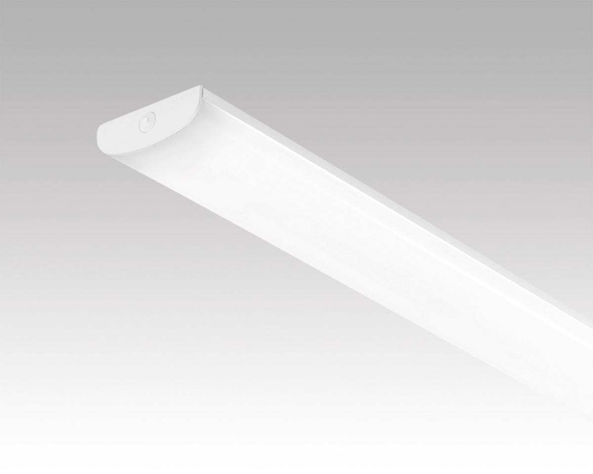 Stomme av vitlackerad aluzink, gavlar av slagtålig plast och kupa av opal linjeprismatisk akryl. Flexibelt montage dikt tak, på väggkonsol, armaturskena eller lina. Infästning c-c 900 respektive 1200 mm. Anslutning genom 13 mm knockouts i gavlarna och på armaturens ovansida. 5-polig snabbkopplingsplint med möjlighet till vidarekoppling monterad i mitten av armaturen.