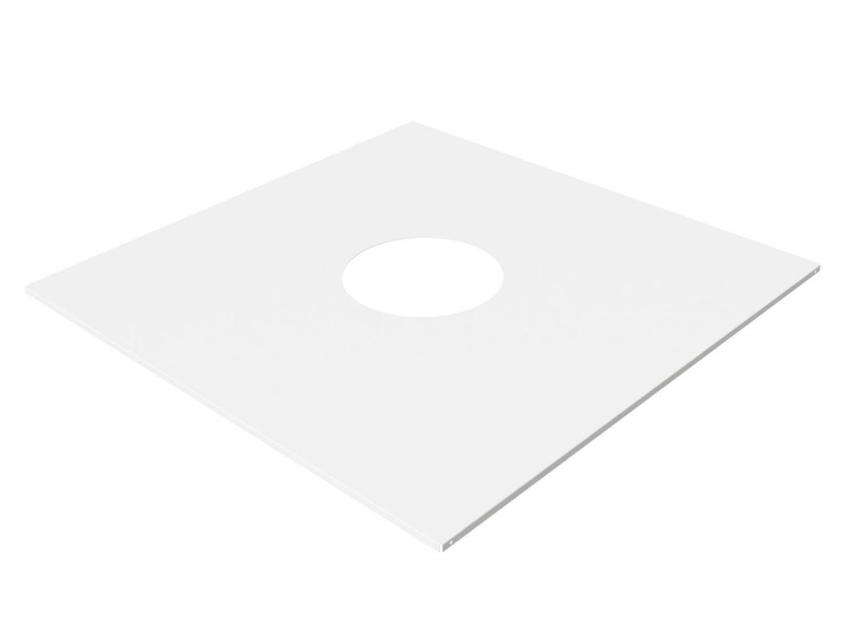 Täckplåt för montering av downlight 6" i undertak 60x60. Håldiameter Ø170 mm. Vit pulverlack.