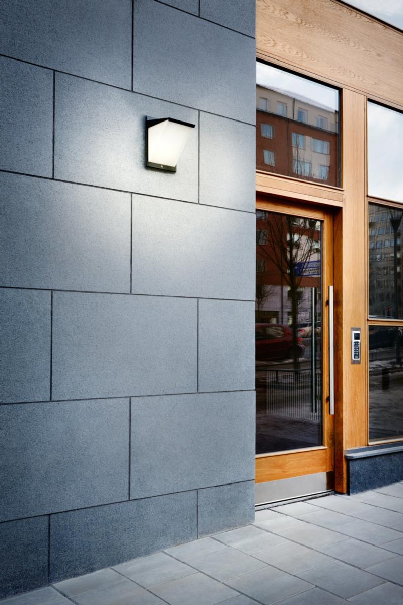 En energieffektiv armatur som i första hand är avsedd för utomhusbruk. Den väggmonterade armaturen sprider ljuset väl runt sig och passar perfekt runt hela husets fasad.