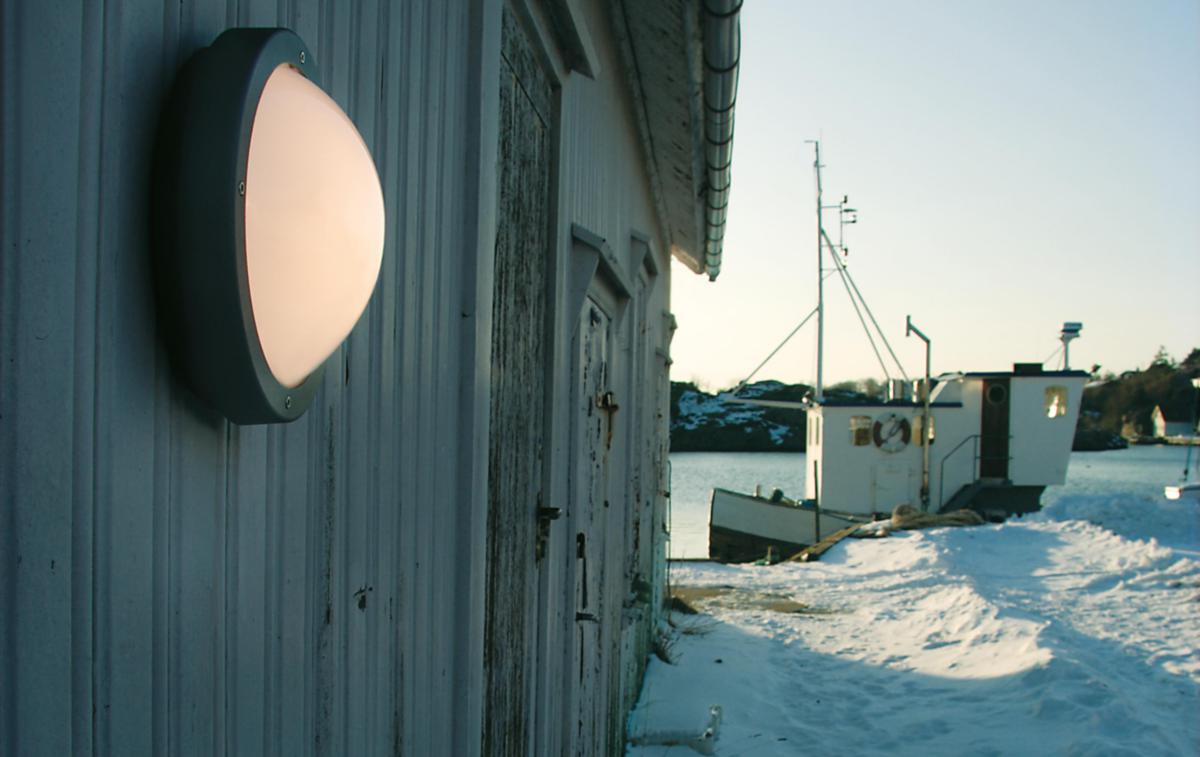 Rund allroundarmatur som kan monteras både ute och inne, mot tak eller vägg. Finns med tänd/släck, sensor eller med skymningsrelä. Tillverkad av pressgjuten pulverlackerad aluminium. Kupa i UV-stabiliserat opalt polykarbonat. Dubbla genomföringar och vidarekopplingsbar snabbplint.