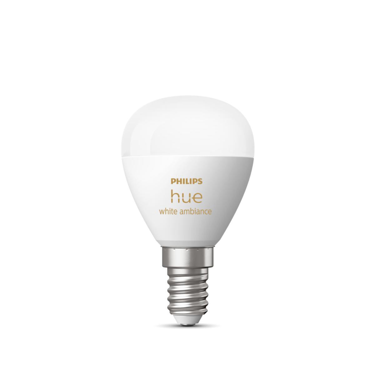 Denna Philips Hue White ambiance Luster-lampan med E14-sockel gör att du kan lägga till valfri nyans av vitt ljus till dina mindre armaturer på bara några sekunder. Du kan justera mellan tusentals nyanser av varmt till kallvitt ljus samt dimra belysningen utan extra installationer. Med Philips Hue-systemet för smart belysning kan du styra, justera och konfigurera belysningen enligt dina önskemål och anpassa stämningen i hemmet för alla aktiviteter och tillfällen. Skapa personligt anpassade inställningar och automatiseringar i Hue-appen och njut av enkel kontroll via appen, smarta tillbehör och röststyrning. Lägg till en Hue Bridge för att utnyttja alla funktioner i Hue-systemet.
