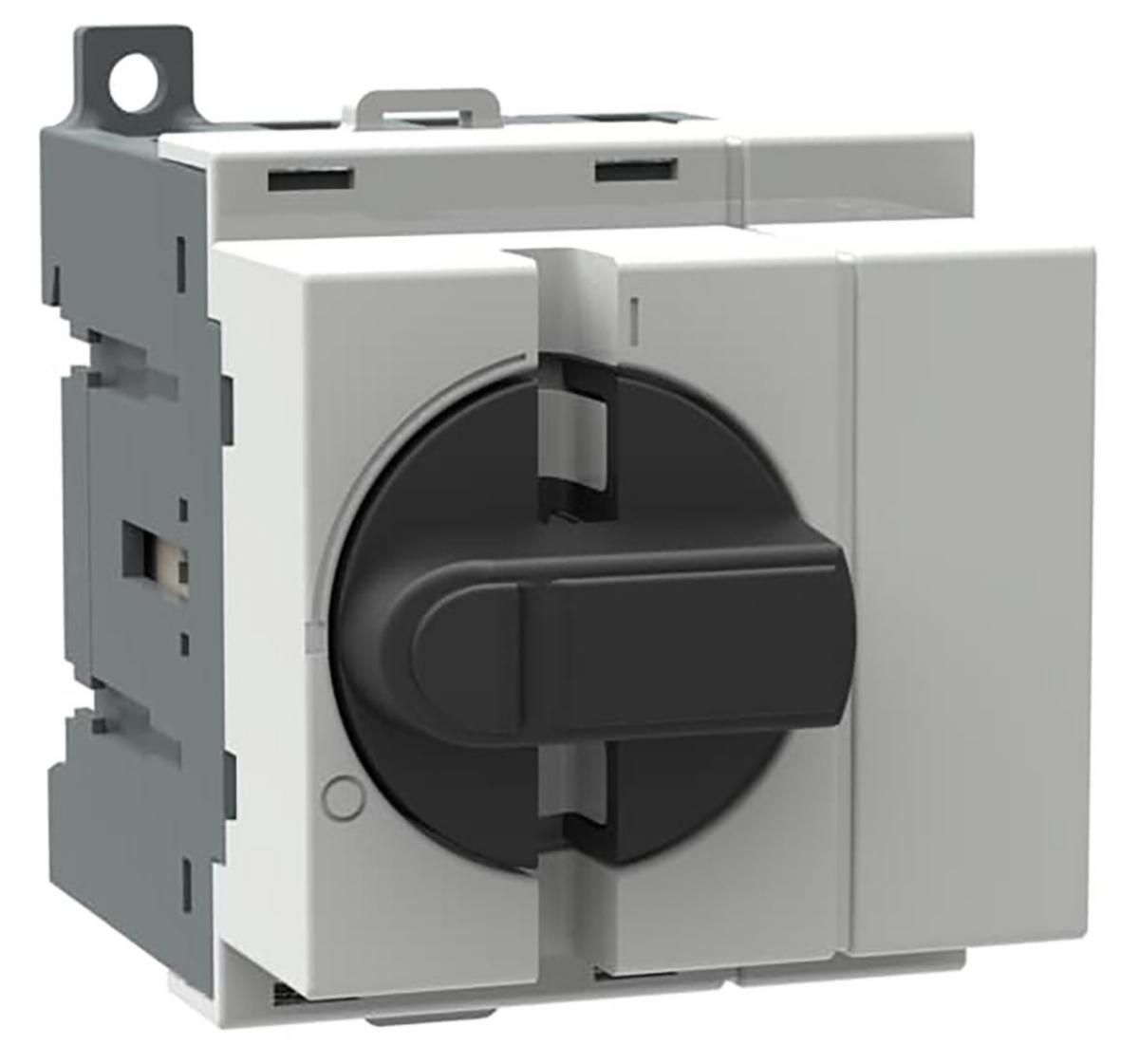 Brytarna är ljusgrå, samma färg som normapparaterna. Låsbart vred och beröringsskyddade uttagsklämmor medföljer, IP20. 3-poliga brytare kan kompletteras med fjärde pol.