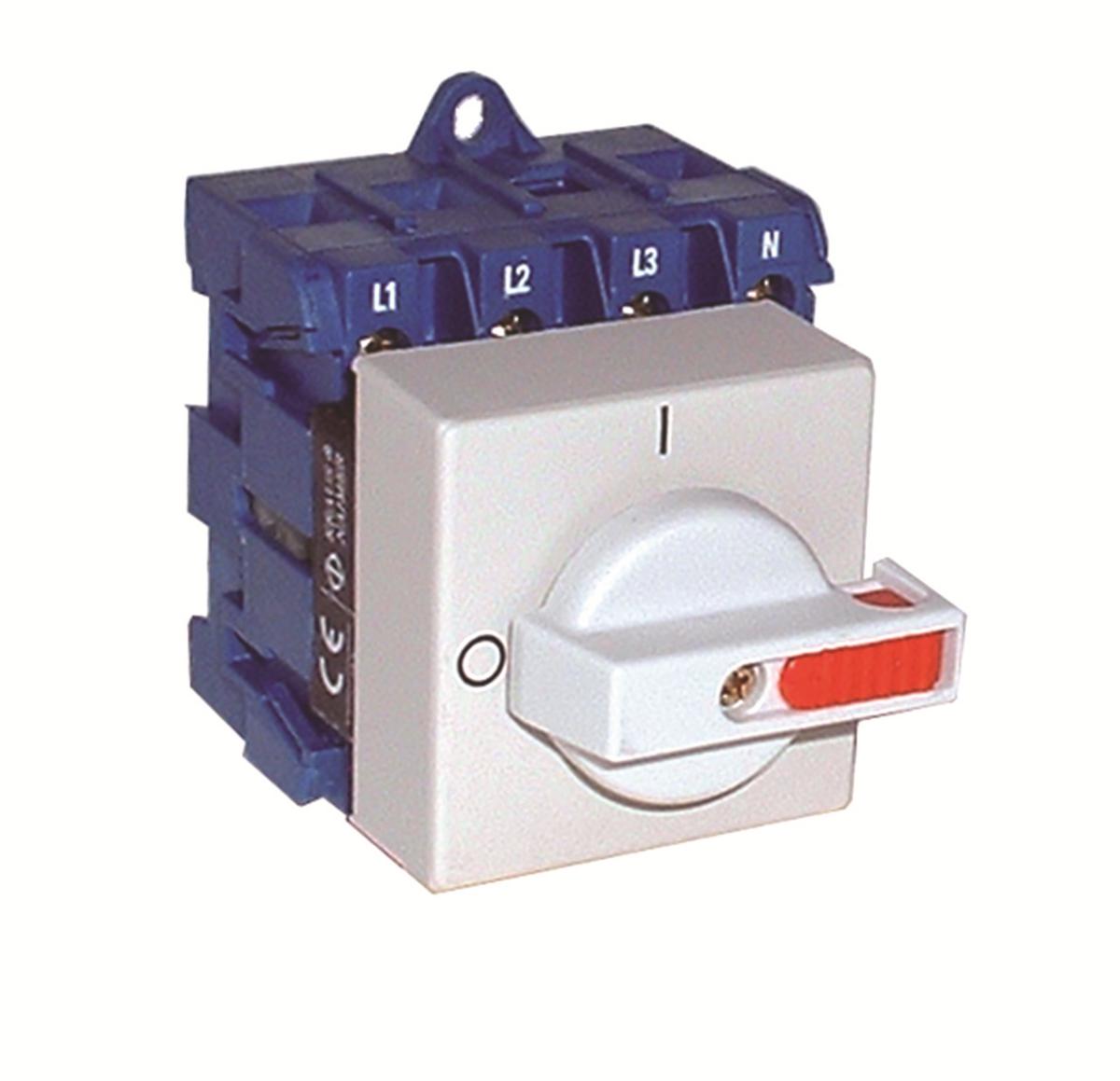 Lastfrånskiljare för normcentral för montage på 35 mm DIN-skena. Låsbar.
