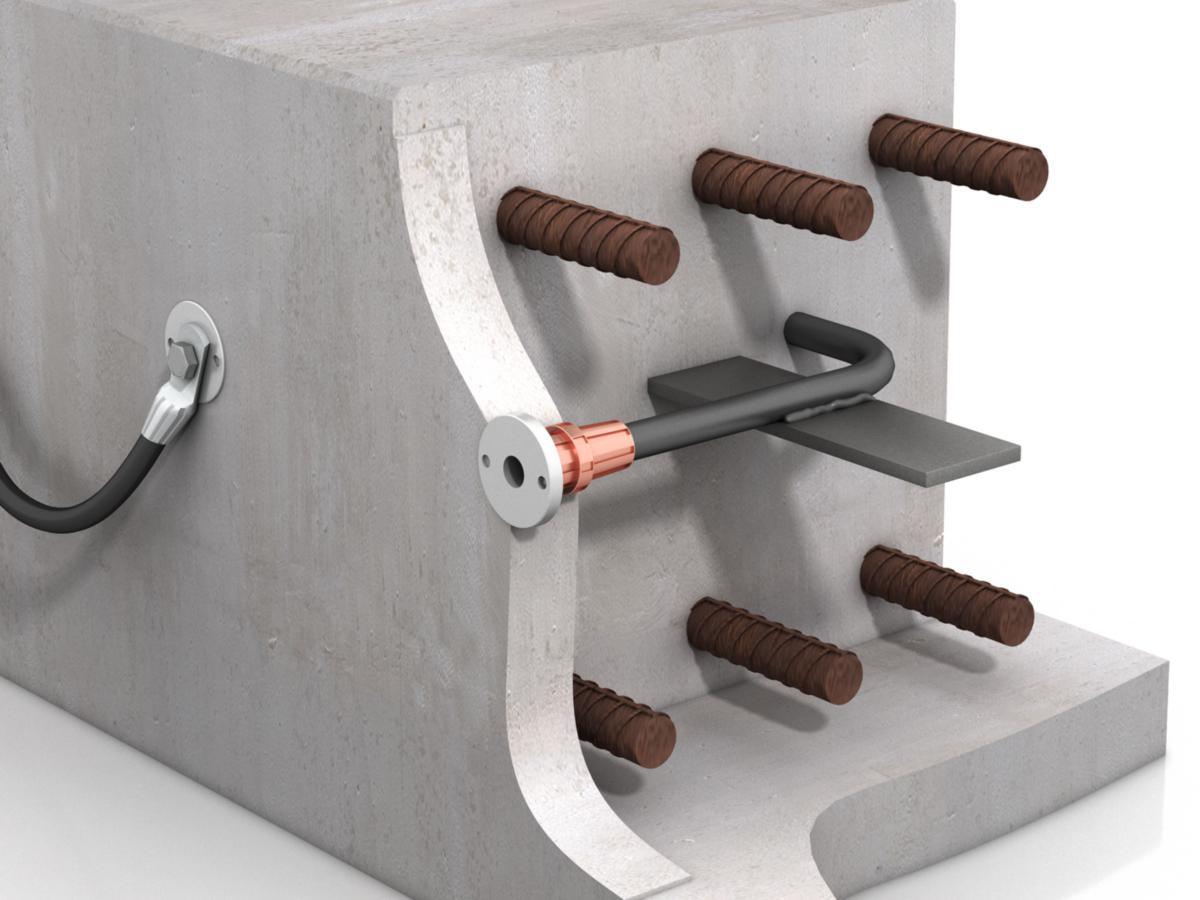 Rostfri jordanslutning med M16-gänga och förmonterat 400 mm vinklat armeringsjärn för svetsning. Jordanslutningen används med jordbult M16x30 för anslutning av övriga produkter såsom stålpelare, stålkonstruktioner.