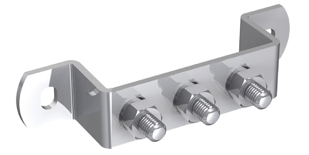 Potentialutjämningsskenor, Väggavstånd (höjd ca.35 mm), komplett med bultar DIN 933 M10x25 mm, muttrar, fjäderbrickor.