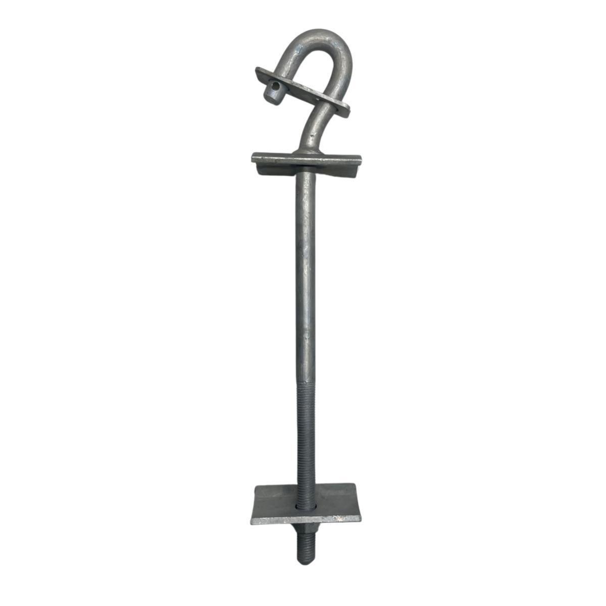 Inspänningskrok i varmförzinkat stål med låsskiva.