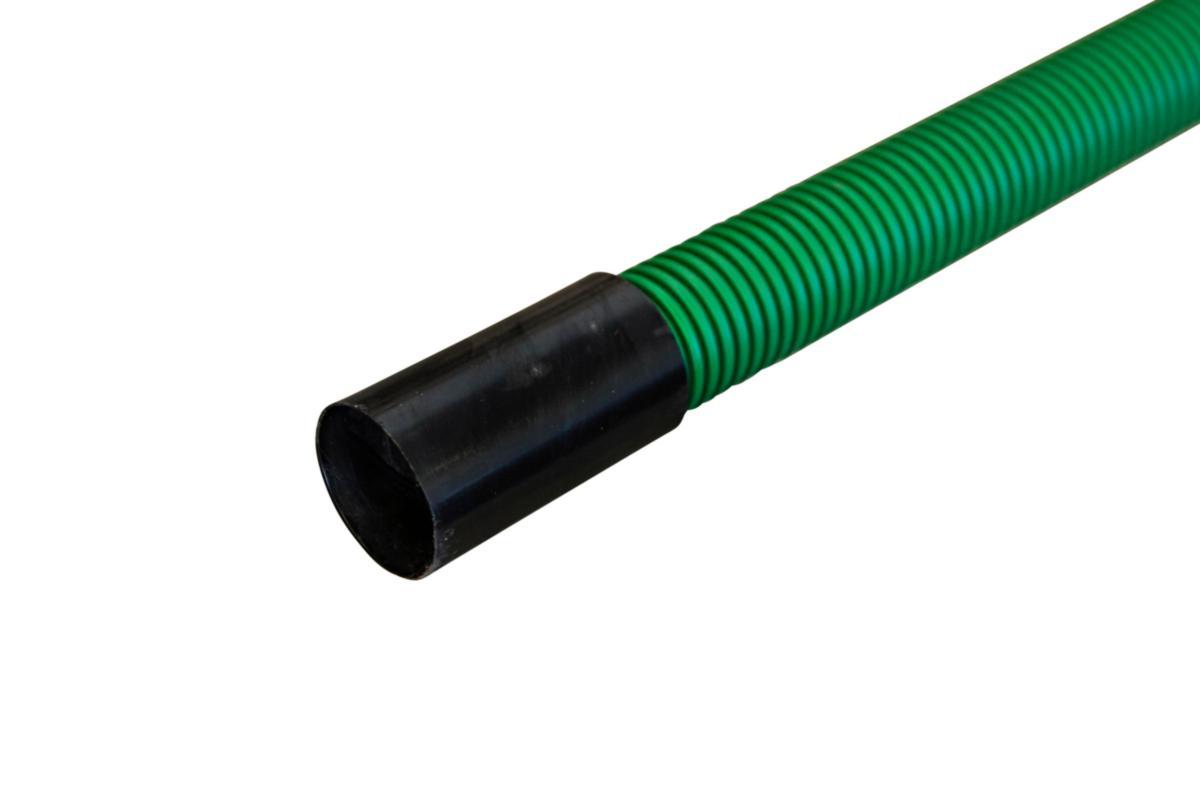 Kabelrör av dubbelväggstyp, klassificerad som SRN rör, korrugerad utsida med slät insida. Tät system, levereras med monterade tätningsringar på rörände och i skarvmuff. Dimension, ytter Ø 50, inner Ø 42 mm. Längd 6 meter. Färg grön utsida och svart insida.