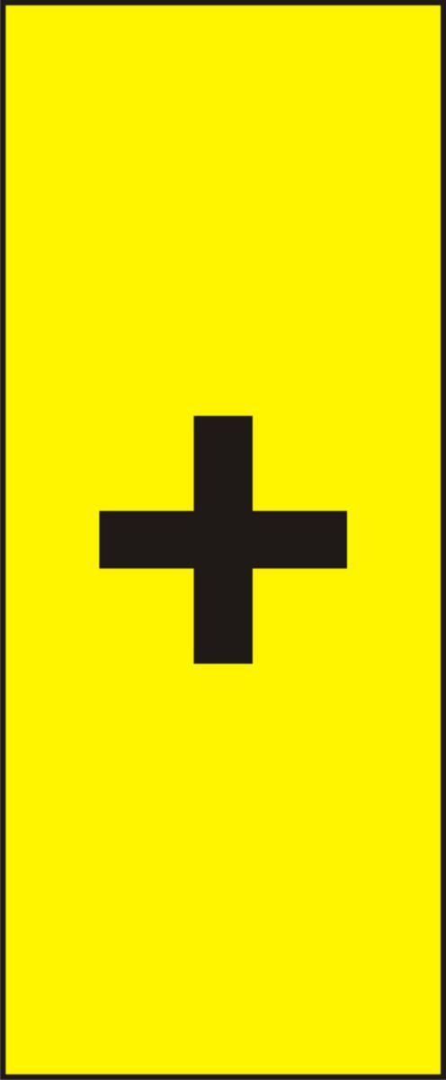 För märkning av belysningsstolpar, kontrollpaneler, stationer, elcentraler, komponentmärkning m m. Systemet består av bottenplatta samt lösa siffror, bokstäver, tecken och symboler. 0.7 mm aluminiumplåt lackerade i gul färg. Tecknen screentrycks i svart och skyddslackeras med klarlack. Teoretiskt läsbart avstånd ca 3 meter.