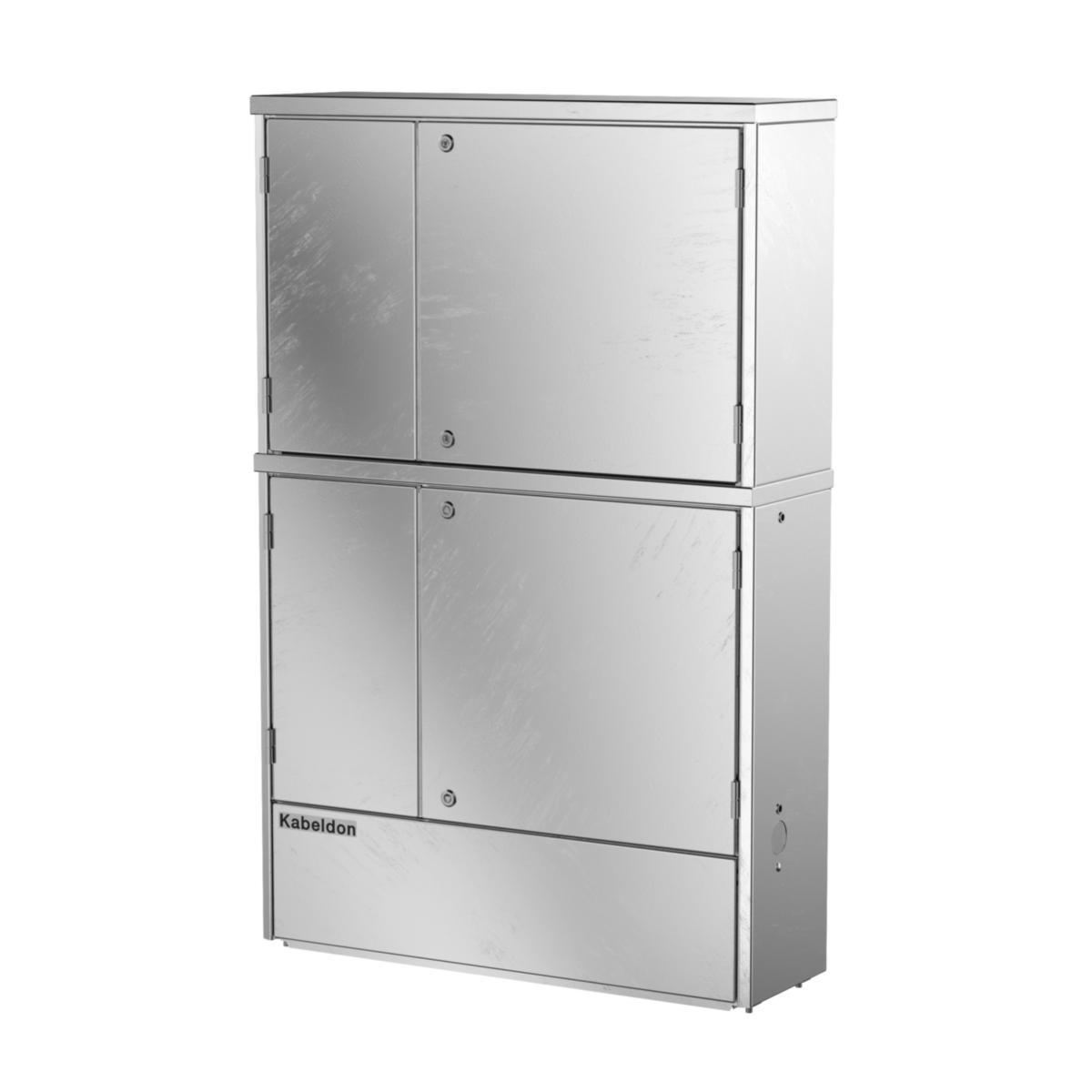 Ovandelen är kan användas som utrymme för kWh-mätare eller förses med montageplatta för olika ändamål. Mellan delarna finns öppningar för kabelgenomföring Ø 50 mm. Gavlarna är försedda med fäste för t.ex. markeringsstång eller tillbehörsskåp. Kapslingens djup på 312 mm möjliggör montage av samtliga elkopplare med oberoende handmanöver. Testad enligt SS-EN 61439-5 och uppfyller kraven för arktiskt klimat. Fundament ingår ej.