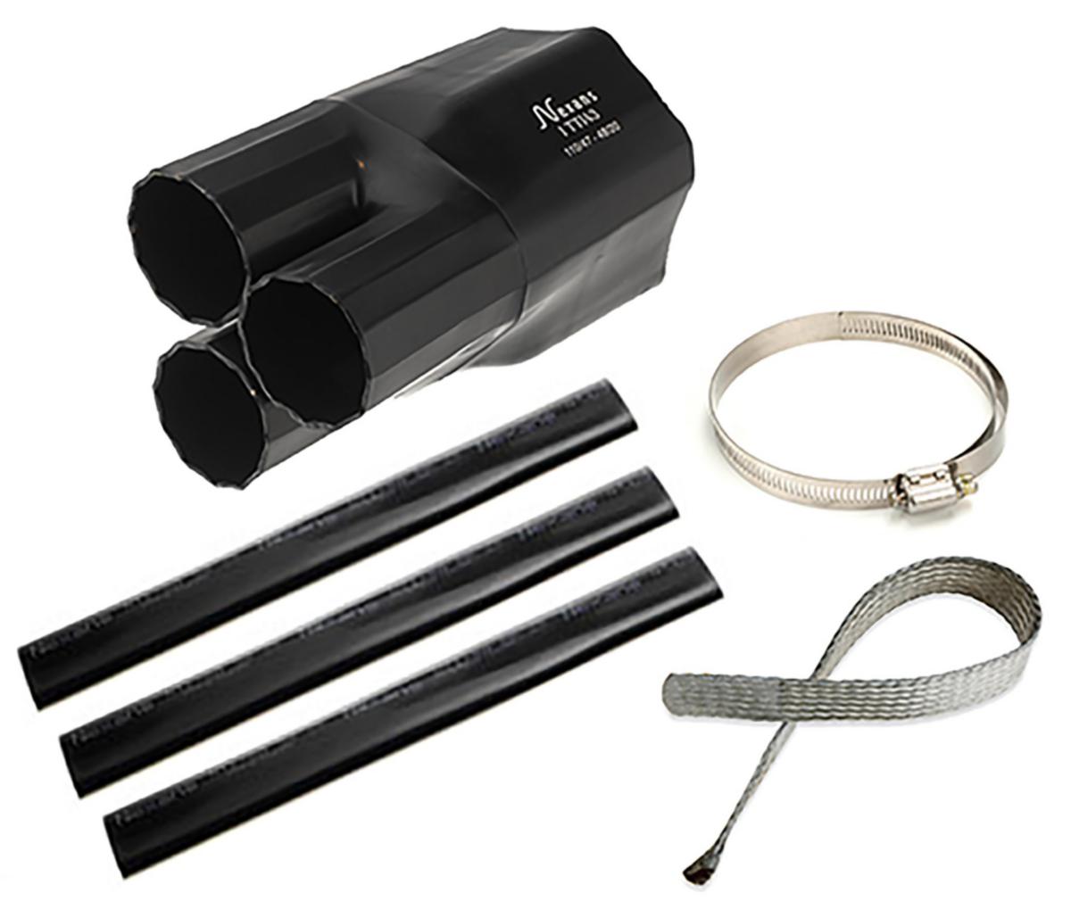 Partskärmningssats av varmkrymp är avsedd för PEX-isolerade 3-ledarkablar med 3 jordledare samt flertrådiga koppartrådar och för montering både inom och utomhus. För 12 kV 95-240 mm², 24 kV 95-240 mm², 36 kV 16-95. Jordledaren tas ut vid grenen. Innehåller grenbyxa och isolerslangar av varmkrymp, kopparstrumpa, mastik, klockfjäder, sandpapper och PVC-tejp.