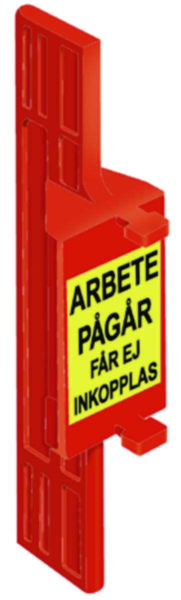 För bortkoppling av faser i apparater. En gul självhäftande tejp medföljer med text "Arbete pågår ..." alternativt "Skiljeställe ...".