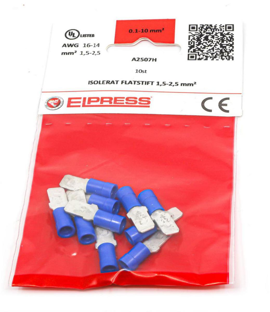 Isolerat flatstift för kabel 1,5-2,5 mm2, av material Cu, förtent, plast PC. Används med certifierade verktyget GSA0760