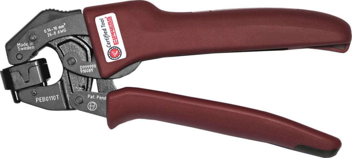 PEB0110T för ändhylsor har en kompakt, självjusterande mekanism som säkerställer kvalitén. Genom den roterbara backen får användaren en ökad flexibilitet då både front- och sidomatning kan göras i ett och samma verktyg. Det stora arbetsområdet (0,14 - 10mm²) samt den roterbara backen gör att PEB0110T ersätter upp till tre verktyg. PEB0110T: bra ergonomisk arbete, optimerad handtagskraft, mindre handtagsöppning. "live-time-calibrated"
