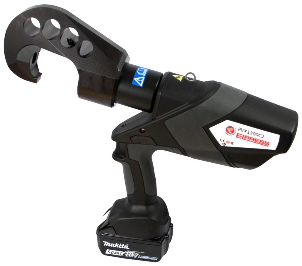 PVX1300C2 är en ergonomisk presspistol för kontaktpressning av ledare (Cu) i krävande applikationer. Särskilda "DUAL"backar finns för 10mm2-300mm2. Övrigt tillbehör till 1300C-systemet går också att använda i PVX1300C2. Presskraft 124 kN. 1 st Li-ion batteri och laddare medföljer. Levereras i Maxcase.
