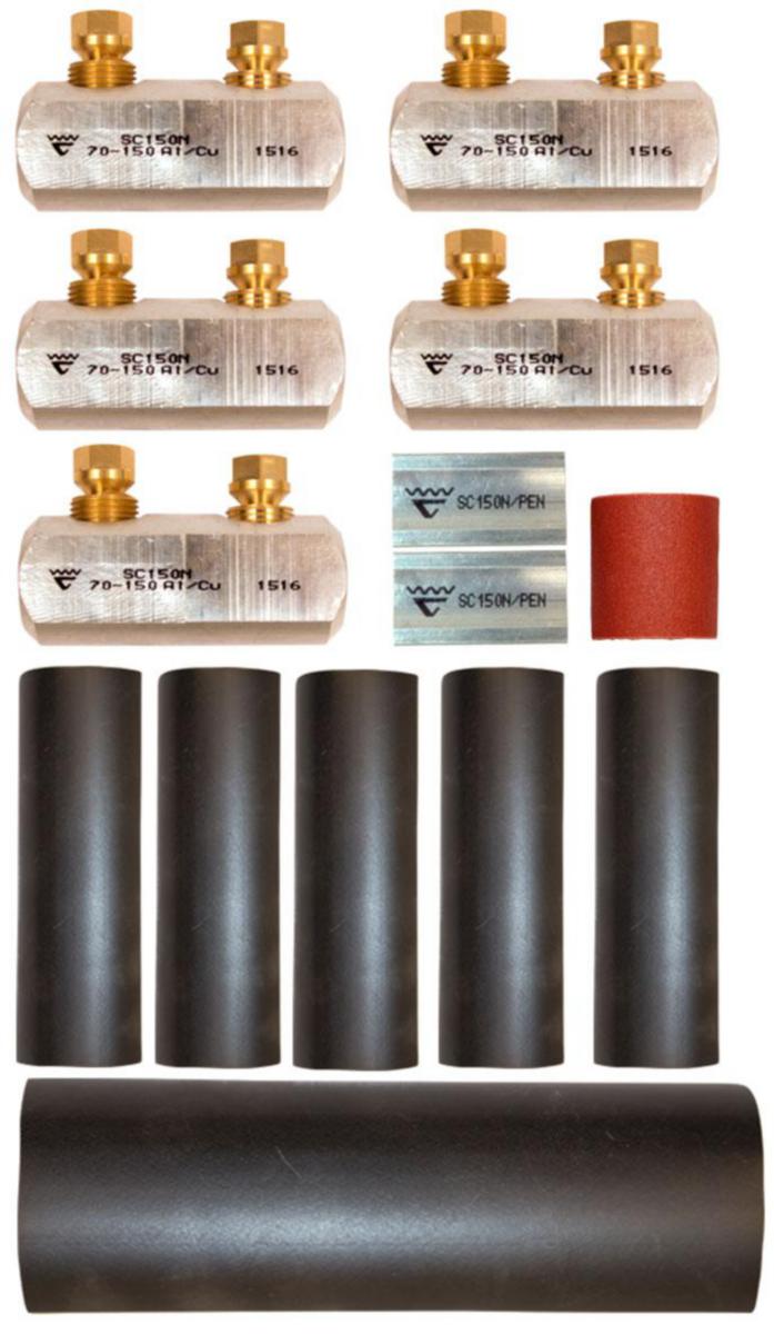 Skarvsats för skarvning av plastisolerad 5-ledarkabel för Al- eller Cu-ledare upp till 1 kV, Cu 95-150 mm², Al 95-150 mm².
