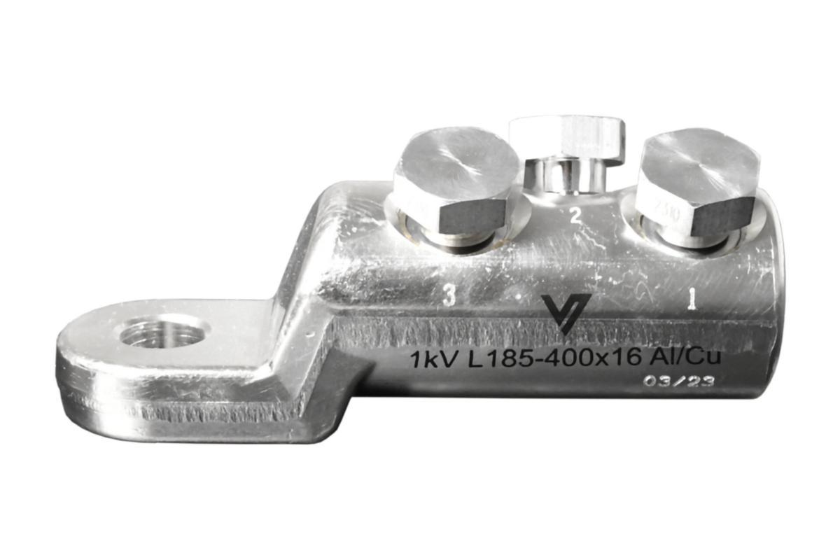 Den mekaniska skruvkabelskon är tillverkad av förtent aluminium, och har momentstyrda bultar som säkrar rätt moment varje gång den installeras. Alla bultar är sexkantsbult. Skruvkabelskon är tillverkad med tvärgående spår på insidan för bästa dragfastighet av ledaren. Då kabelskon är förtent kan den användas till både aluminium och koppar.
