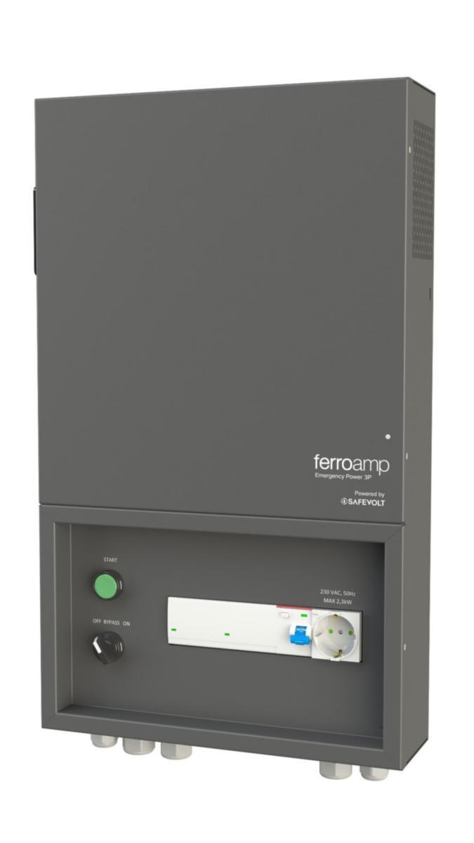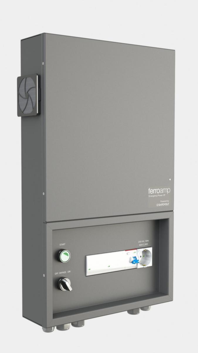 Backup lösning (UPS) som ger 3x16A (3x25A under 5 sekunder) på trefaser (11kW) för Ferroamp system med en EnergyHub. Emergency Power 3P har en unik lösning som förenklar installationen av avbrottsfri kraft. En kompakt jordelektrod används med kontinuerlig övervakning av både eventuellt uppkommen jordpotential och anläggningens PEN-funktion. Unik lösning med integrerad jordfelsbrytare och mätjordtag för enklare och billigare installation (vanligt jordtag kan även användas vid behov). Ferroamp EmergencyPower är säkrare än andra lösningar då den bryter redan vid 50V, och även för elnätsbolagen då den inte har stöd för att mata ut mot elnätet (UPS) utan kan bara förse fastigheten med ström från solceller och batteri.