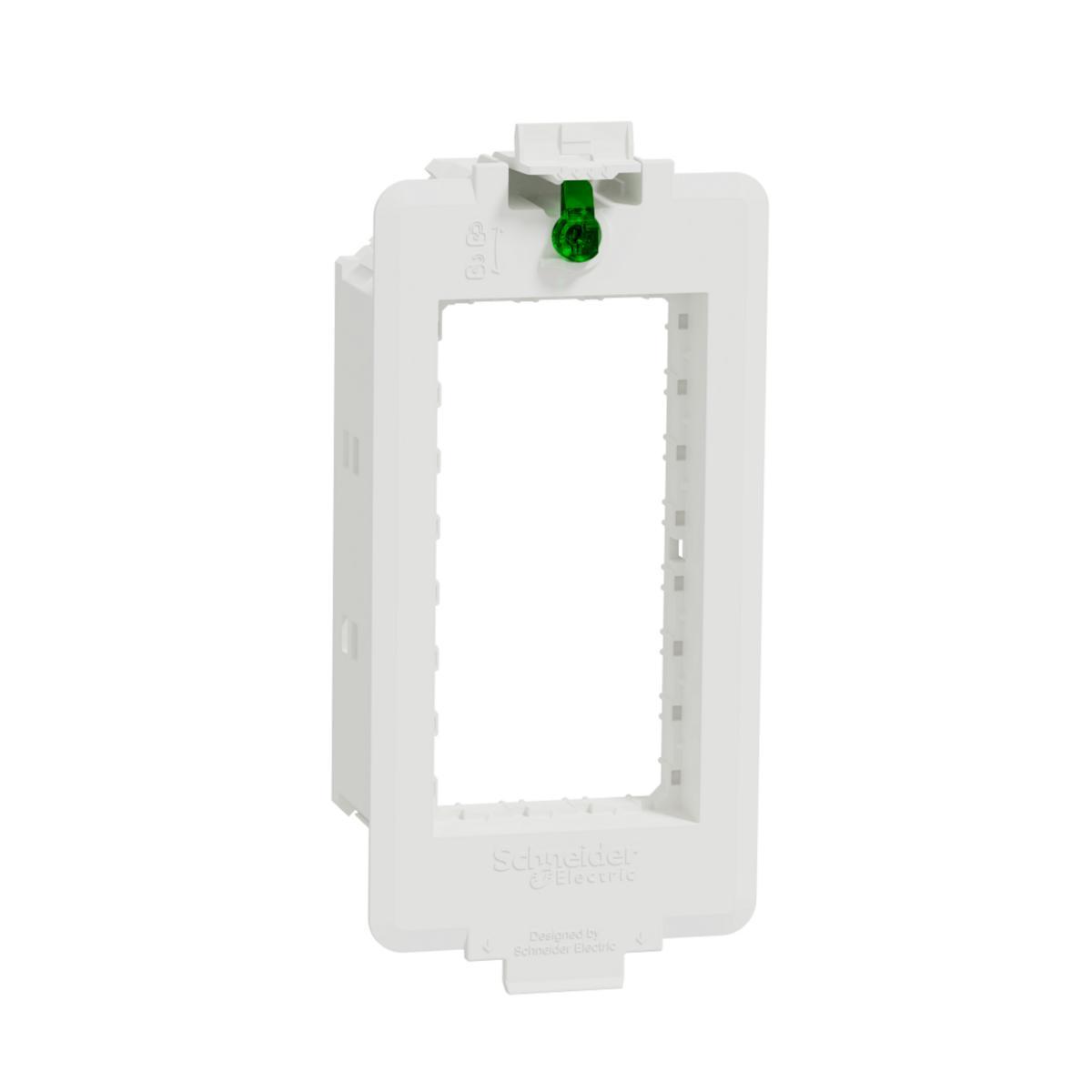Montageram för 2 st 45x45mm uttagsenheter ur Unica System+ uttagssystemet. Monteras enkelt I golvboxen, och du låser den med det gröna vredet