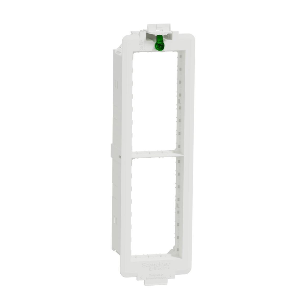 Montageram för 4 st 45x45mm uttagsenheter ur Unica System+ uttagssystemet. Monteras enkelt I golvboxen, och du låser den med det gröna vredet
