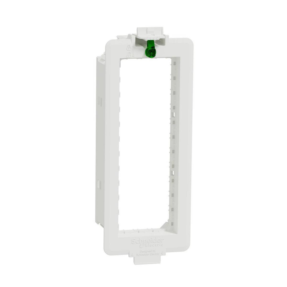 Montageram för 3 st 45x45mm uttagsenheter ur Unica System+ uttagssystemet. Monteras enkelt I golvboxen, och du låser den med det gröna vredet