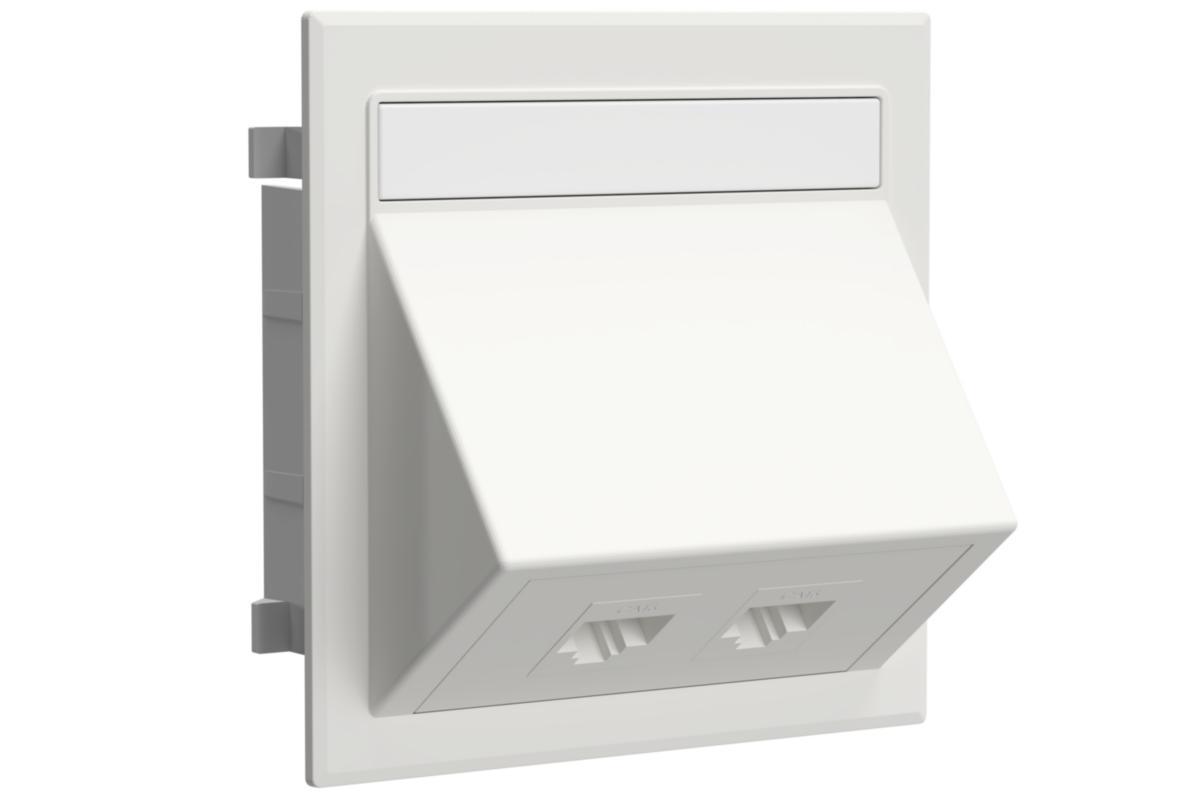 RJ 45 datauttag med vinklat lock. Perfekt vid installation av datajack i kanaler. Kan placeras horisontellt eller vertikalt.