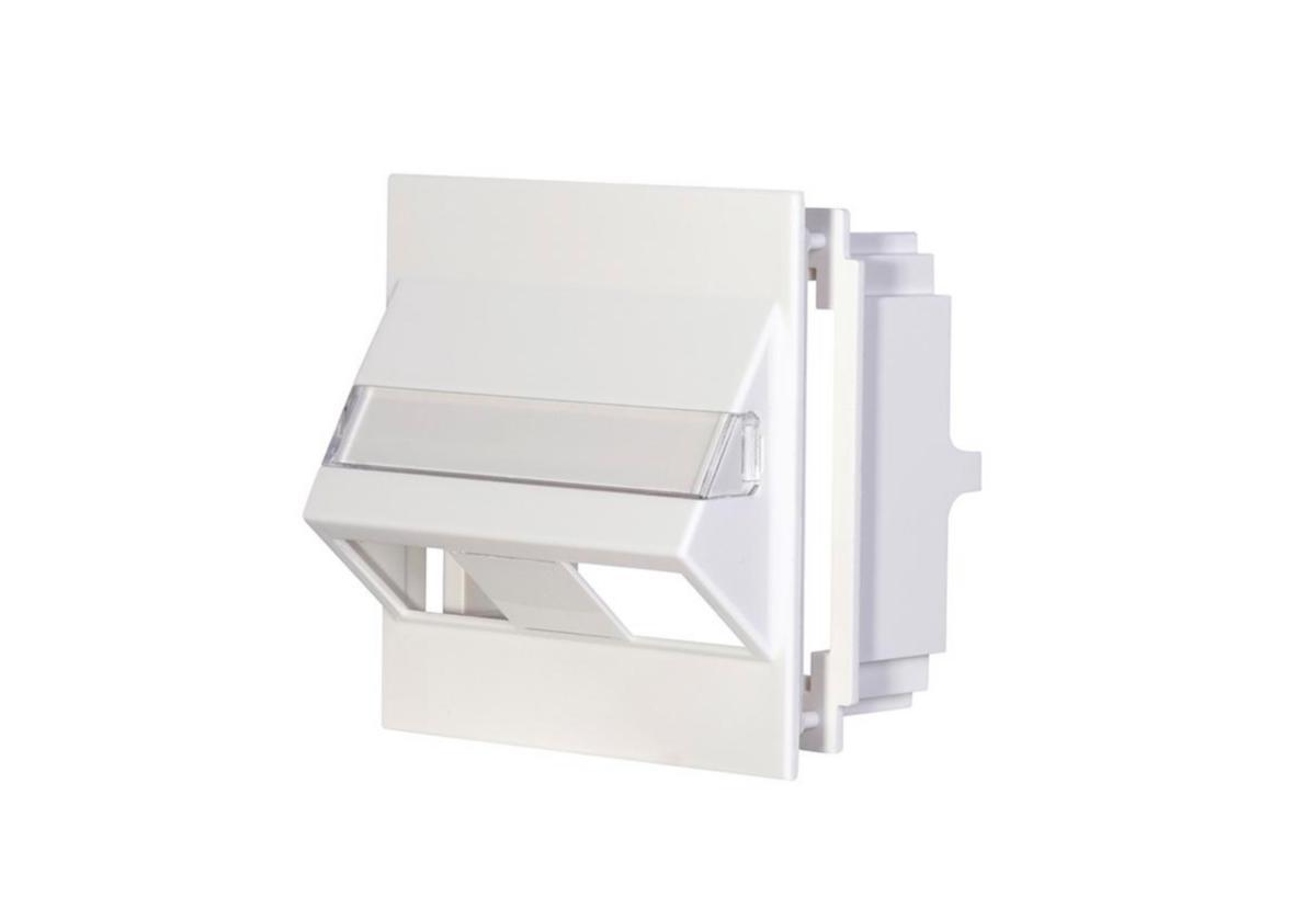 Fästram för modularuttag med namnskylt. Används med adapterplattor för AMP, Systimax, Keystone eller Lexcom datajack E1174642-1174645