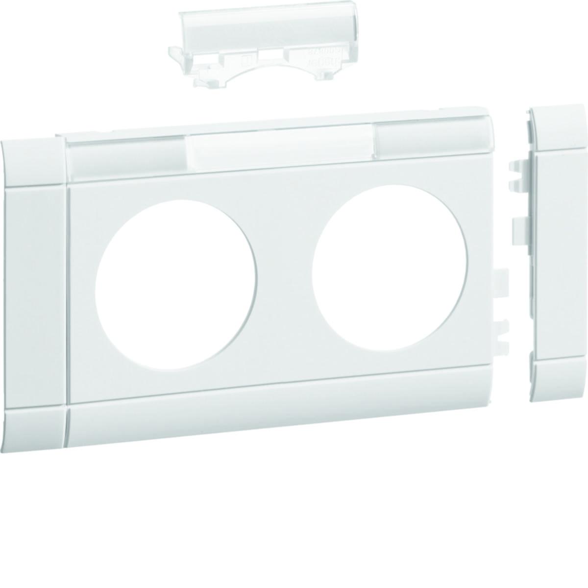 Uttagsramar för 3-vägs uttag med märkskylt och design från 2015. Ramarna har stor tolerans vid kapning av kanalfronter och är sammankopplingsbara.