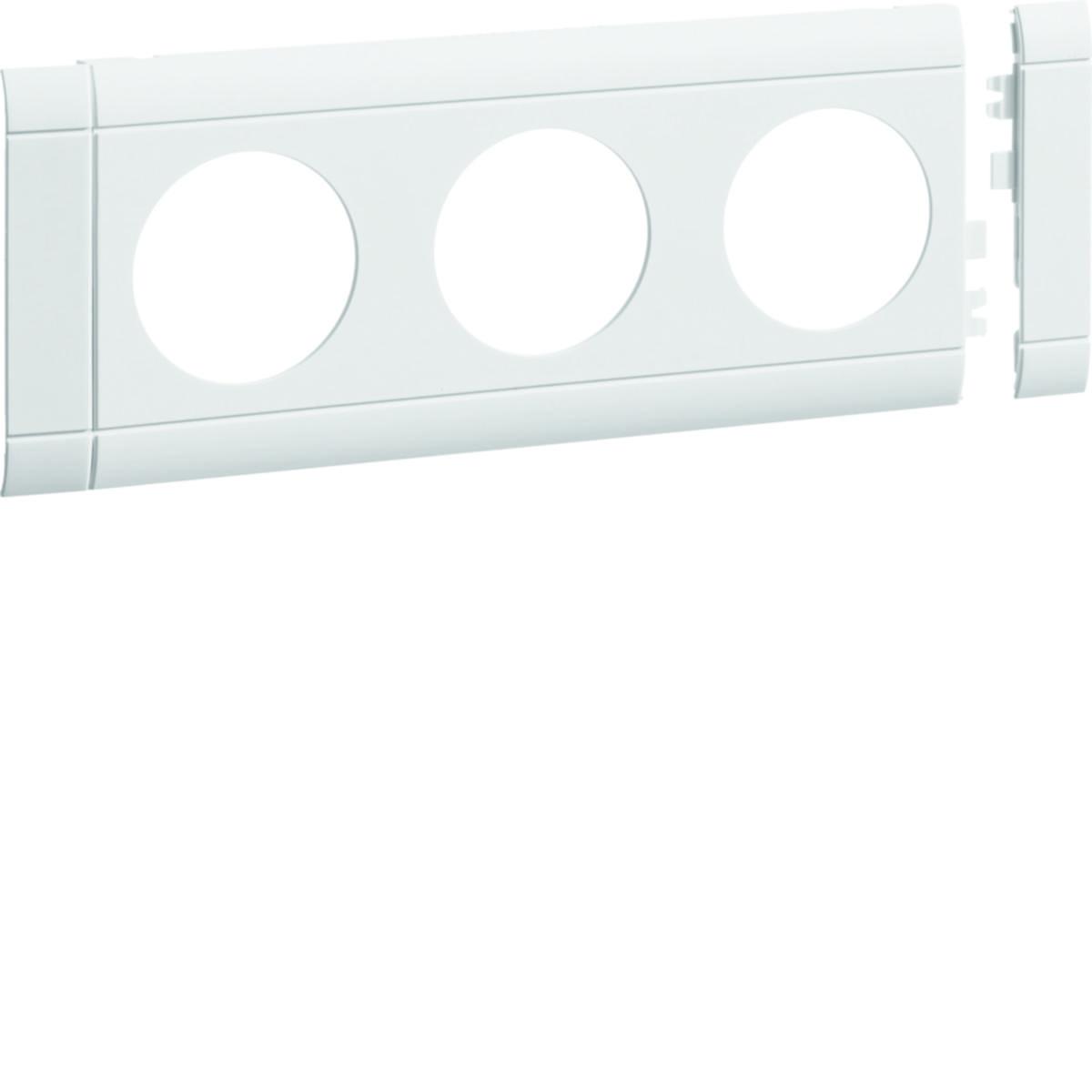 Frontramar för 3-vägs uttag utan märkskylt med design från 2015. Ramarna har stor tolerans vid kapning av kanalfronter och är sammankopplingsbara.