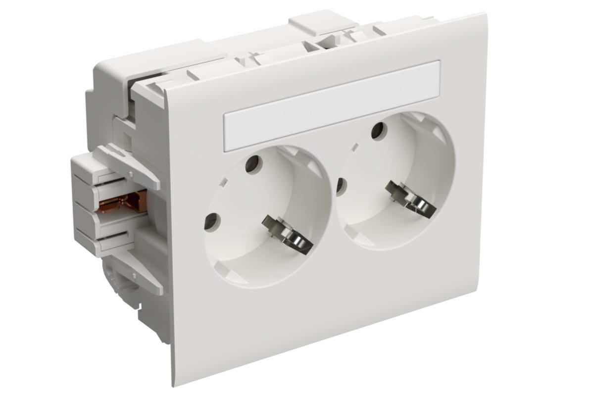 Uttag avsett för montering i installationskanaler med 80 mm öppning. 250V 16A klassificering. Frontplattan installeras efter att uttaget har installerats i kanalen. På så sätt kan frontplattan bytas ut om den är sliten eller skadad. Frontplattan låser uttaget i kanalen. Kopplingsplinten är placerad på sidan av uttaget, och slavar kan installeras i två riktningar