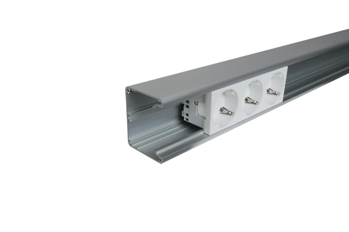 V60 är en aluminiumkanal som passar lika bra som fönsterbänkskanal, nedföringskanal, uttagslist, lab panel, väggstav eller som bordsbox. V60 kan installeras horisontellt eller vertikalt på vägg eller på möbler med hjälp av olika fästgavlar. Kanalen är tillverkad i aluminium n kan även lackeras i valfri RAL kulör.